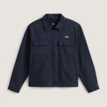 La campera McAvoy Zip Station Jacket color azul Parisian Night está confeccionada en sarga de algodón de peso medio y presenta un diseño funcional con cierre frontal oculto. Incluye bolsillos de parche con solapa y cierres a presión ocultos, además de bolsillos laterales abiertos para mayor practicidad. El diseño se completa con una etiqueta tejida Vans® en el dobladillo, sumando un toque distintivo a esta prenda urbana y versátil hecha en 100% algodón.