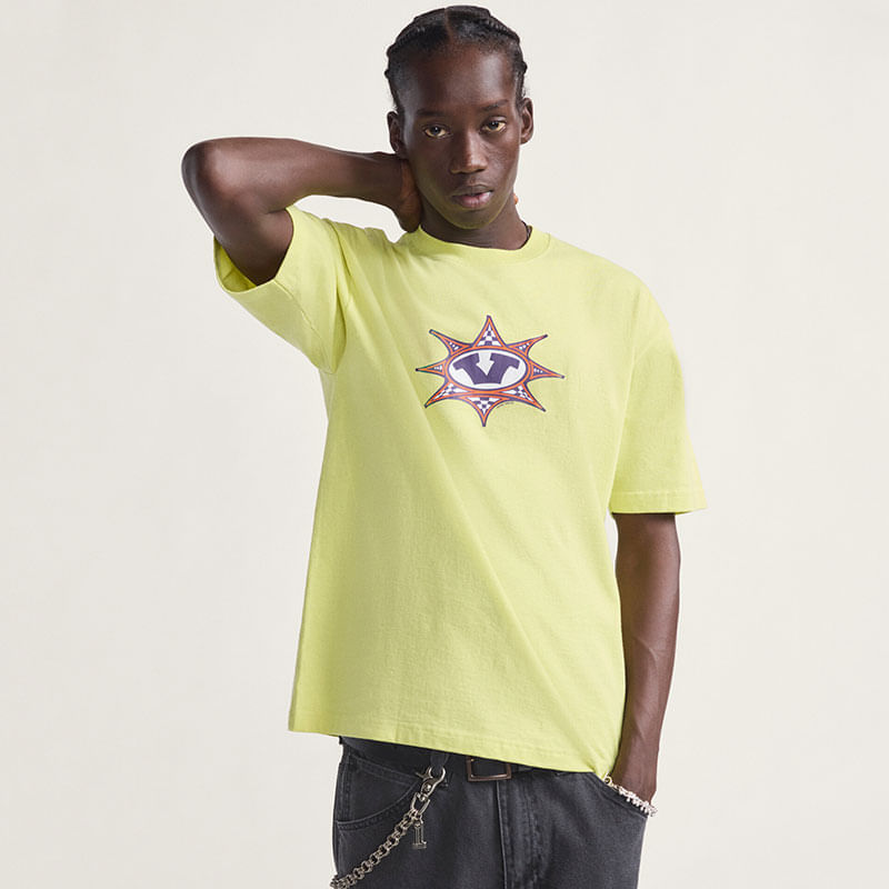 Esta remera de algodón presenta cuello redondo, mangas cortas y un gráfico de estrella serigrafiado en el centro del pecho.