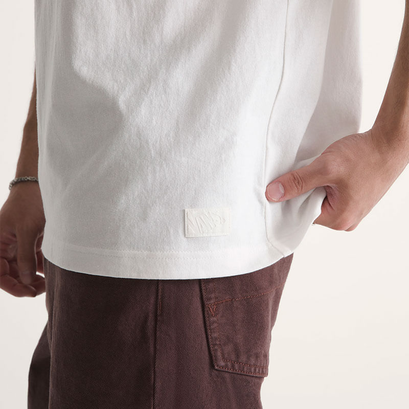 Remera VANS original LX SS Tshirt, confeccionada en algodón 100% de punto ligero que ofrece suavidad y transpirabilidad durante todo el día. Presenta cuello redondo clásico, mangas cortas y un calce holgado que aporta una sensación relajada y cómoda. El acabado lavado en prenda brinda un tacto suave desde el primer uso y un look versátil, ideal para combinar fácilmente en outfits urbanos de uso diario.